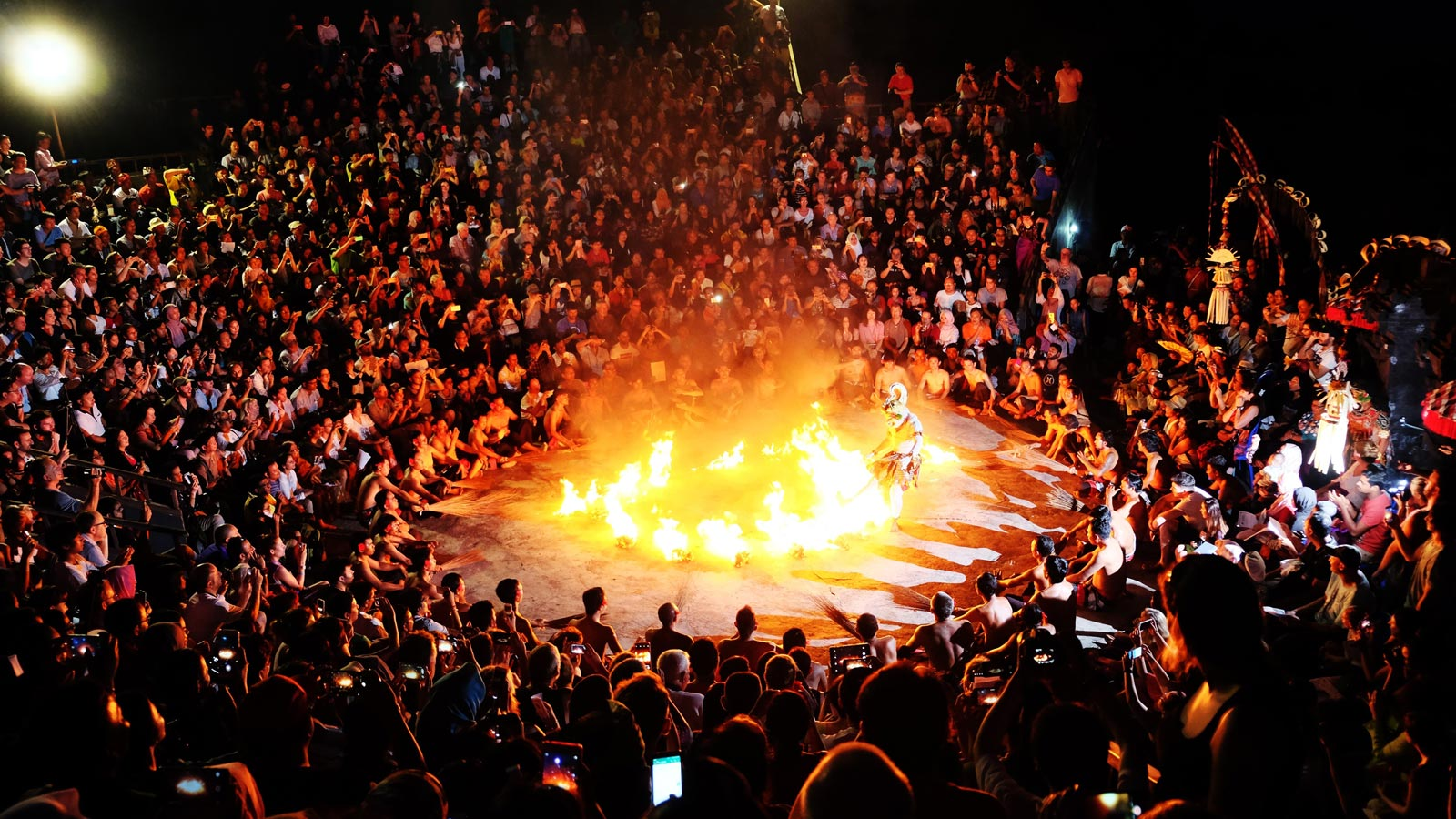 Kecak is often performed outdoors, especially at Uluwatu Temple, where dancers are silhouetted by the setting sun and framed by the sea. In some versions, the show ends with a fire-walking ritual, where a dancer in trance walks barefoot through burning embers.